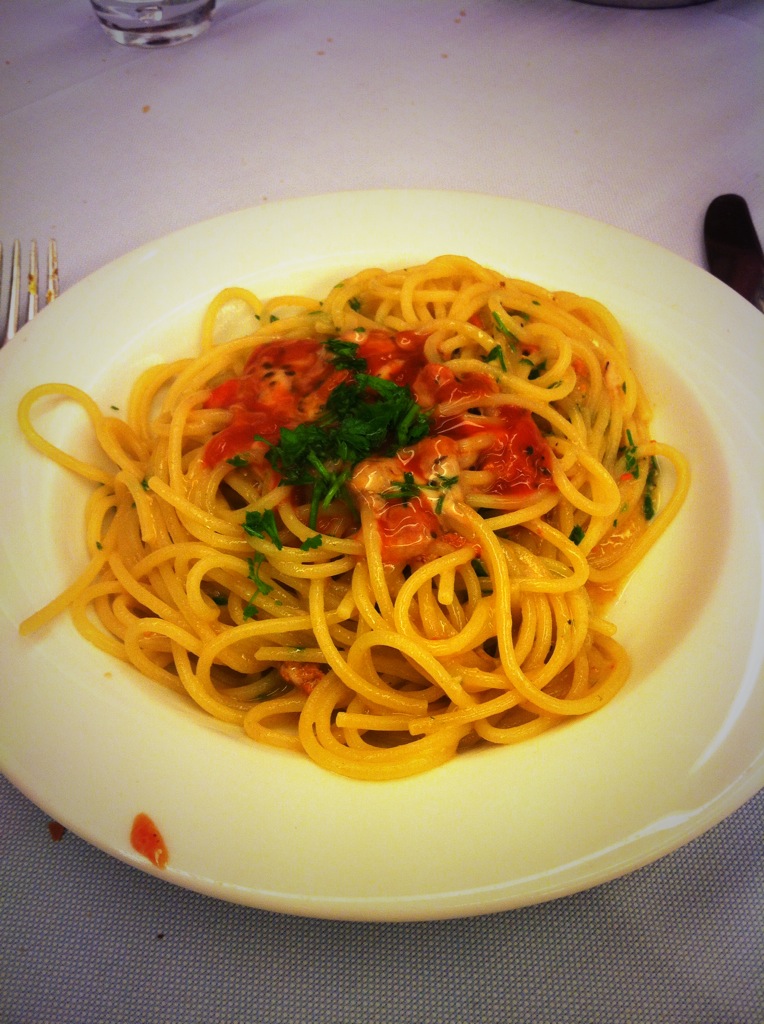 a handful of chopped parsley Shred the rabbit meat of the bones and add to the sauce, then strain in enough of the braising liquid to just cover. Simmer until everyone seems happy together, then serve with something bright and green, and polenta or pasta.